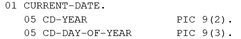| DAY YYYYDDD | ユリウス暦表示の日付 | ![]() |